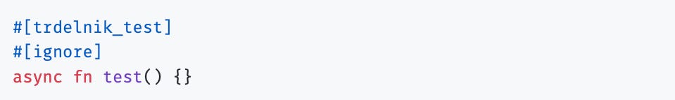 Skipping test: To exclude a test from running, you can include the #[ignore] macro.
