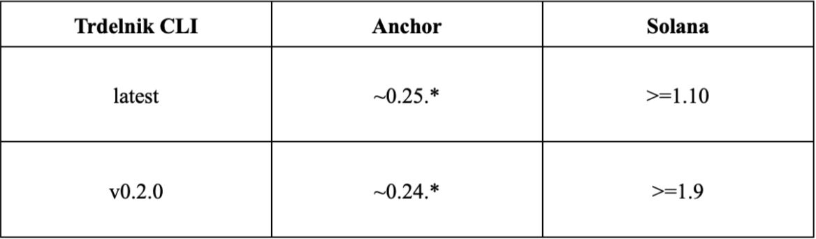 We provide support for specific versions of Anchor and Solana as outlined in the table below: